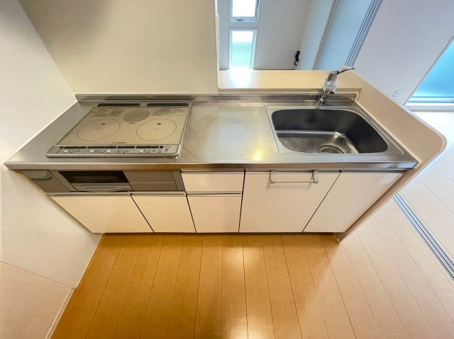 「セジュール下山手通」のキッチンは、毎日の料理を快適にサポートする使い勝手の良い設計が魅力です。シンプルで清潔感のあるデザインながら、調理スペースや収納の配置に工夫が凝らされており、自炊派の方にも満足いただける仕様となっています。コンパクトな空間ながらも、シンク・コンロ・作業台の動線がスムーズで、効率よく調理ができる点が特徴。上下に設けられた収納スペースは調理器具や食器、調味料などをすっきりと整理でき、キッチン周りを常に美しく保てます。コンロは2口タイプを採用しており、同時調理もスムーズ。お湯の温度調整がしやすい給湯設備も備わっており、後片付けも快適です。清掃しやすいキッチンパネルや耐熱性の高いカウンターなど、細部までメンテナンス性に配慮。ナチュラルカラーのキッチン扉が室内の雰囲気に溶け込み、居心地の良い空間を演出しています。毎日の料理時間を楽しく、効率的にしてくれる機能的なキッチンです。