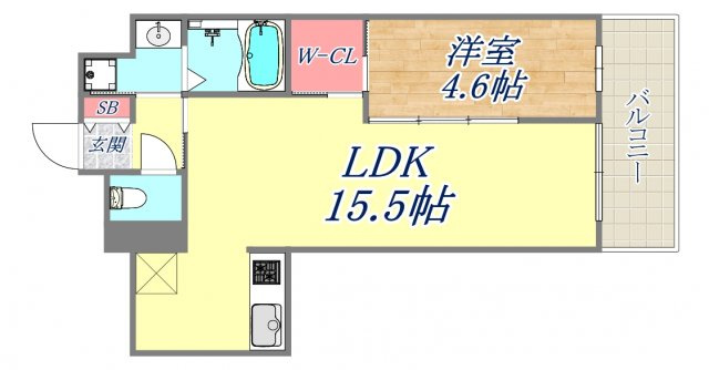 このマンションの1LDK住戸におけるリビング・ダイニングと洋室は、「コンパクトながら機能・快適性を両立させた空間」として設計されています。たとえば、ある住戸の専有面積は約 41.85㎡、リビングダイニングキッチン(LDK)は約 11.2帖、洋室は約 4.6帖という構成です。リビングは、キッチンとつながる設計(対面式キッチン)になっており、料理をしながらでもリビング側にいる人とのコミュニケーションが取りやすく、空間に開放感があります。フローリング仕様で、床面は明るめの色調でまとめられており、掃除や生活動線の見通しも良いため、日常の居住性が高いです。洋室はややコンパクトながら、クローゼット(またはウォークインクローゼット)など収納スペースが設けられており、衣類や日用品の整理がしやすい点が特徴です。また、バルコニーが付いている住戸もあり、窓からの採光・通風が確保されやすく、明るく風通しの良い住環境を期待できます。さらに、建物自体が2020年築と新しく、設備や内装も比較的新しいため、壁・床・建具などに清潔感があり、全体的にモダンで整った印象。また、浴室乾燥・冷暖房エアコンなど水回り・空調の設備が整っており、リビングや洋室の快適性も高められています。これらを踏まえると、グランデュオ三宮2のリビング・洋室は、単身者やカップルなど少人数世帯で「居心地よく」「暮らしやすい」住まいを求める人にマッチする、落ち着きと機能性を兼ね備えた居室だといえます。