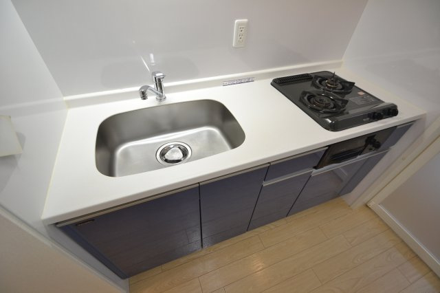 オーキッドレジデンス神戸三宮のキッチンは、毎日の調理や家事を快適にこなせる機能性とデザイン性を兼ね備えた空間として設計されています。室内に配置されたシステムキッチンは、ガスコンロ対応で2口以上のコンロが標準装備されており、本格的な料理にも対応できるスペースと性能を持っています。都市ガス供給により火力の調整がしやすく、効率的に料理を進められるため、単身者からカップルまで幅広い入居者のニーズに応えています。また、キッチン周りはフローリング仕上げの居室と調和したシンプルで清潔感のあるデザインで、日々の生活に溶け込みやすいインテリアです。キッチンのカウンターや作業スペースは、調理器具や食材を並べやすい広さを確保しており、下ごしらえから仕上げまでストレスなく作業ができます。上部および下部の収納も設けられているため、調理器具や食器、調味料などを整理して収納可能で、キッチン周りをすっきり保つことができます。室内全体が効率的に設計されていることで、家事動線がよく、日々の料理が負担になりにくい環境です。さらに、キッチンはリビング・ダイニングとの繋がりが考えられた間取りになっていることが多く、家族や友人との会話を楽しみながら調理ができる点も魅力です。一部の部屋ではカウンターキッチン仕様となっており、開放感のあるつくりで料理中も圧迫感を感じません。これにより、食事の準備から片付けまで快適に過ごせる住空間となっています。全体として、オーキッドレジデンス神戸三宮のキッチンは、利便性と生活の質を高める設備が整い、日々の暮らしをより快適にサポートする空間として評価されています。