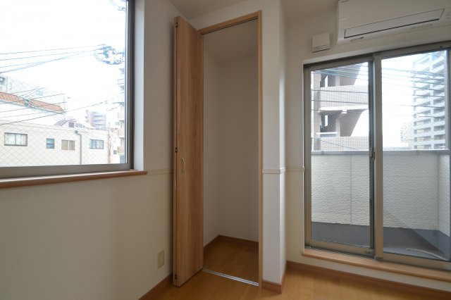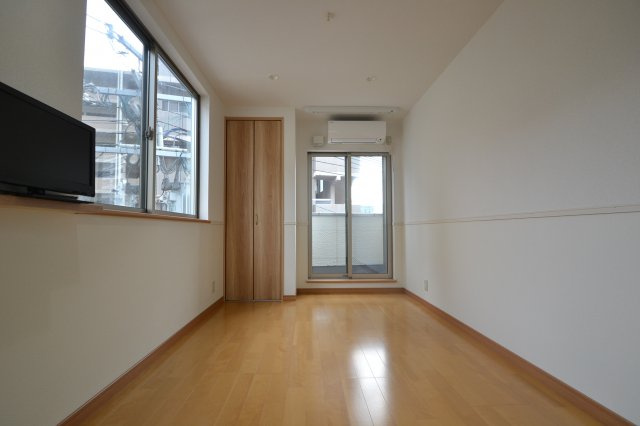 レジデンス郷2の洋室は、単身者や学生、カップルに適した快適な居住空間として設計されています。室内はフローリング仕様で、明るく清潔感のある空間が広がっており、インテリアが映えるシンプルな内装です。ワンルームの洋室は約7.5帖の広さがあり、ベッドやデスク、収納家具などを効率よく配置できる余裕のあるサイズ感となっています。窓からは南向きの採光が入りやすく、日中は自然光で室内が明るくなるため、生活全般が快適です。日当たりの良さは洗濯物を室内に干す際にも嬉しいポイントで、四季を通じて心地よい暮らしを後押しします。エアコンが備え付けられているため、夏の暑さや冬の寒さにも対応でき、年間を通して快適な室温を保てます。壁面にはクローゼットが設けられており、衣類や日用品の収納に便利。整理整頓がしやすく、生活スペースを広く使うことが可能です。室内設備はシンプルながらも日常生活に必要な機能が整っており、入居後すぐに快適な生活を始められる点が魅力です。また、床材や壁の素材は掃除がしやすく、清掃の負担を軽減してくれます。洋室は居住空間としてだけでなく、プライベートな時間を過ごすリラックス空間としても最適で、家具のレイアウト次第で多彩な使い方ができます。そして、窓の外に広がる街並みや自然光を感じながら暮らせる、この物件ならではの心地よい住環境が大きな魅力となっています。