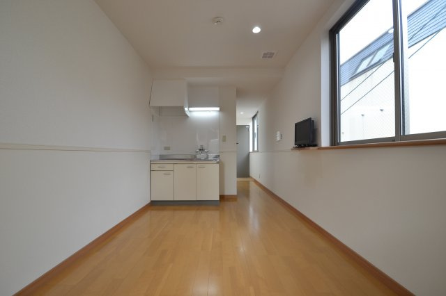 レジデンス郷2のキッチンは、コンパクトな住空間に調和した機能的な設計が魅力です。ワンルームタイプの居室に配置されたキッチンは、シンプルながら毎日の調理に必要な機能が備わっており、生活の利便性を高めています。床はフローリングで統一され、室内全体の明るさや清潔感と調和しているため、調理中の足元も快適です。IHコンロが設置されており、火を使わない安全性の高い仕様で、初めての一人暮らしや忙しい生活にも安心して使えます。IHは掃除がしやすく、油汚れもさっと拭き取れるため、日々の手入れも簡単です。作業スペースは限られますが、シンクとコンロが近接配置されているため、効率よく調理ができます。キッチン周りには収納スペースも設けられており、調理器具や調味料、小物類をすっきり整理できるため、空間を有効活用できます。コンパクトながらも実用性を重視した設計で、普段使いの調理道具を十分に収納できる点も魅力です。また、キッチン近くにエアコンや窓が設置されている間取りが多く、換気や室内の空気循環がしやすいのも嬉しいポイントです。シンプルで使いやすいレイアウトは、単身者や学生、働く人の生活スタイルにフィットし、調理から片付けまでを快適にサポートします。日常の料理や軽い食事準備をストレスなく行える空間として設計されています。