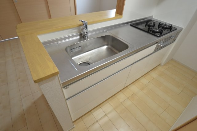 モンマール三宮のキッチンは、日常の料理を快適にこなせる機能性とデザイン性が両立したスペースです。各住戸のキッチンにはシステムキッチンが導入されており、都市ガス対応のガスコンロが設置済みで、調理器具をすぐに使える仕様になっています。多くの住戸は二口〜三口コンロ対応で、複数の料理を同時に進められるため、毎日の自炊や本格的な調理にも対応可能です。フロアはフローリングで、清掃がしやすい設計となっており、調理中の油はねや水はねもさっと拭き取れます。調理スペースも効率よく確保されており、下部には収納キャビネットが備わっているため、鍋やフライパン、食材ストックも無理なくしまえます。コンパクトな間取りの1Kタイプから、広めの1LDKタイプまで間取りによって多少仕様が異なりますが、どのタイプもキッチンは生活動線を意識した配置で、リビングやダイニングとの連携が取りやすいレイアウトになっています。モンマール三宮は築浅で室内設備が充実しているため、効率的で快適なキッチン環境が整っているのが大きな魅力です。調理や片付けをスムーズに行いたい方におすすめのキッチン空間と言えるでしょう。
