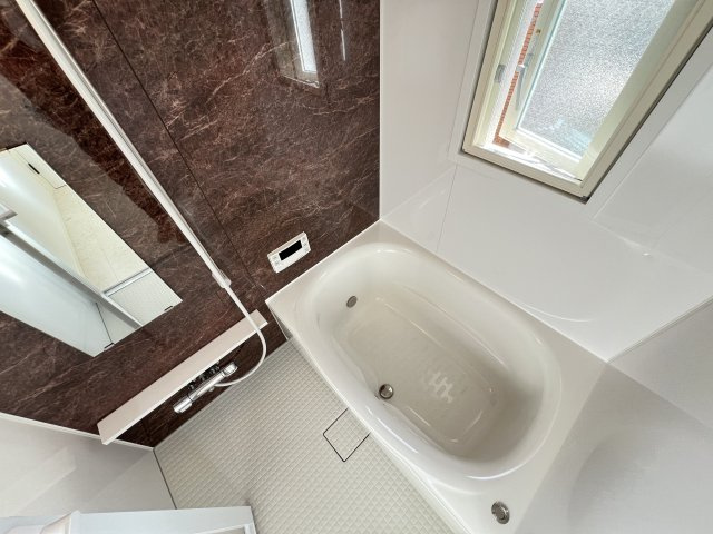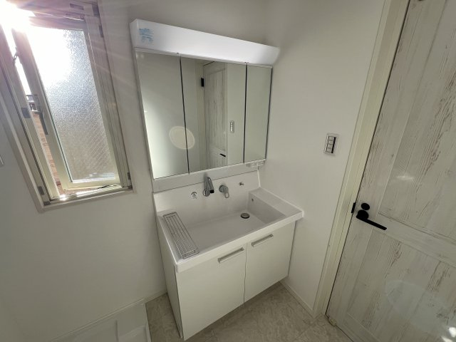 villa le Euphoria KITANO の水回り空間は、毎日の暮らしを快適にする最新設備が充実した仕様になっています。バスルームは独立したユニットバス設計で、浴槽とシャワーがしっかり分かれており、ゆったりと湯船に浸かることができます。また、追い焚き機能が備わっているため、帰宅時間が遅くなった日でも温かい湯をいつでも楽しめるのが魅力です。さらに、浴室乾燥機能が装備されているので、梅雨時や雨の日でも衣類の乾燥やカビ対策に役立ちます。温水洗浄便座付きのトイレは清潔感のある独立空間として設計されており、快適な使用感を提供します。洗面所は独立したスペースが確保されており、生活動線がスムーズです。三面鏡付きの洗面化粧台は収納力が高く、歯磨きやスキンケア用品、ヘアケアグッズなどを整頓しやすい仕様です。洗面台の下部や鏡裏の収納スペースによって、洗面周りがいつもすっきりと片付き、朝の身支度も快適に行えます。洗面所には洗濯機置き場も室内にあり、脱衣スペースとしても使いやすい配置です。全体として、バス・トイレ・洗面所は機能性とデザイン性が調和した空間で、日々の生活の質を高める設備が整っています。温水洗浄便座や浴室乾燥機、追い焚き機能などの快適装備が揃い、忙しい毎日にも安心して使える水回りとなっています。