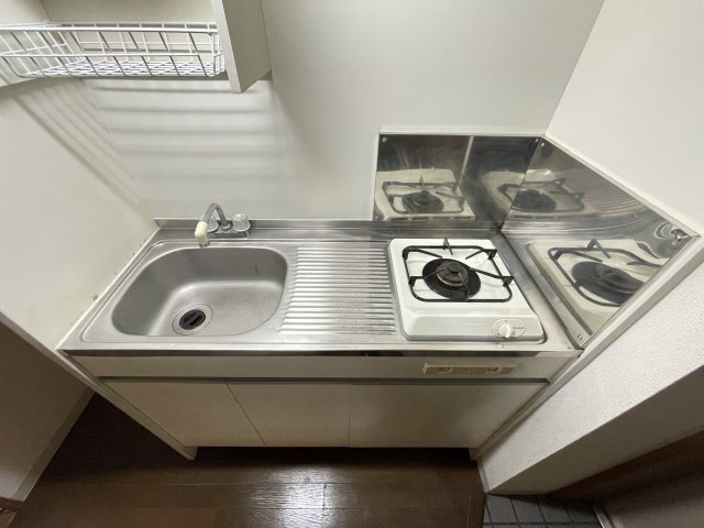 ポルト新神戸のキッチンは、限られた空間の中でも快適に調理ができるよう、機能性と使いやすさを重視した設計が特徴です。システムキッチンを採用しており、コンロ・シンク・作業スペースが効率よく配置されているため、調理や後片付けの動線がスムーズ。日々の自炊はもちろん、簡単な料理やお弁当作りにも対応できる実用的なレイアウトとなっています。ワークトップやシンク周りは掃除のしやすい素材が用いられ、油汚れや水はねも簡単に拭き取れるため、清潔な状態を保ちやすい点も魅力です。収納面では、上下のキャビネットや引き出し収納を備え、調理器具や食器、調味料、食材ストックなどを整理しやすく、キッチン空間をすっきりと使うことが可能です。換気性能に配慮したレンジフードを設置し、煙やにおいがこもりにくく、室内全体の快適性にも配慮。内装は落ち着いたカラーでまとめられ、居室との統一感があり、生活感を抑えたスマートな印象を与えます。一人暮らしの方を中心に、日常の料理を快適にサポートする、実用性の高いキッチン空間です。