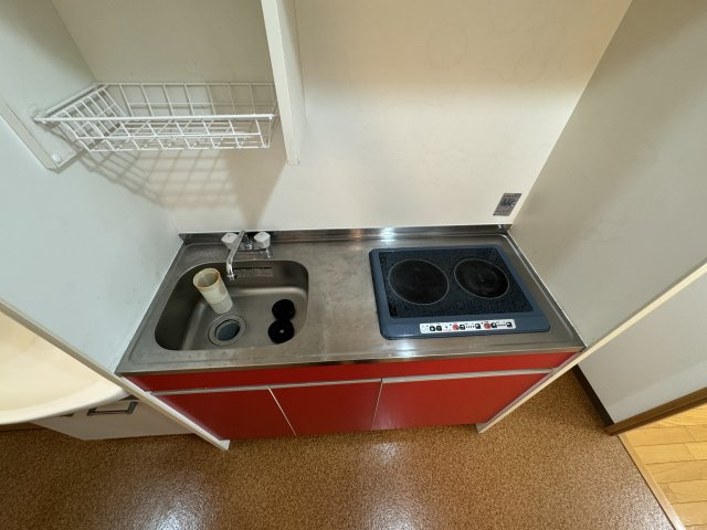 B-RISE元町のキッチンは、限られたスペースを有効活用した機能的な設計で、単身者の毎日のお料理を快適にサポートする仕様になっています。1Kの間取りに合わせたコンパクトなスペースではありますが、IHクッキングヒーターの2口コンロが標準装備されており、同時に2つの調理を進められるため、効率よく料理ができます。IH式は火を使わずに熱を伝えるので、お手入れが簡単で安全性も高いのが魅力です。シンク周りや作業スペースはシンプルにまとめられており、調理器具や食器を最低限用意すればすぐに料理を始められます。システムキッチン仕様で統一感があり、スペース全体が清潔感ある印象です。IHヒーターのフラットな調理面は拭き掃除がしやすく、毎日のメンテナンスも簡単です。また、キッチンは洋室や居住スペースと一体でありながらも、動線が工夫されているため、生活空間を効率よく使えます。すぐ近くに冷蔵庫や収納棚を配置すれば、調理中の動きもスムーズです。収納スペースは限られますが、シンク下や上部にラックなどを設置することで、調理器具や調味料を整理して収納できます。全体として、B-RISE元町のキッチンは安全性・掃除のしやすさ・実用性に優れ、単身生活でもストレスなく料理が楽しめる実用的なスペースになっています。